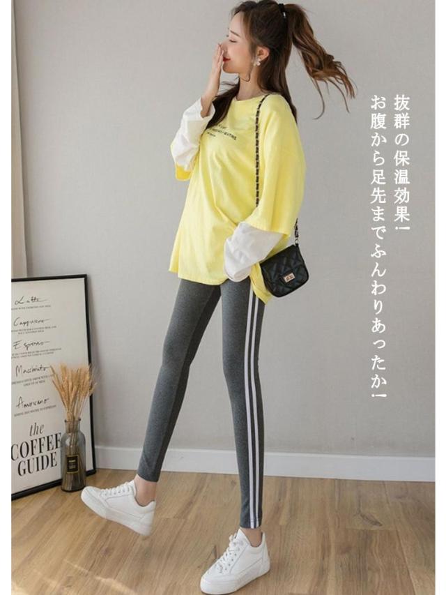 マタニティ 長ズボン 裏起毛 無地 厚手 マチ付き 2本ライン レギンス ロングパンツ 妊婦服 あったか ウエスト調整可能 ストレッチ マタニティウェア 防寒 アジャスター付き 伸縮性 レギンスパンツ 美脚 暖かい 保温 秋冬