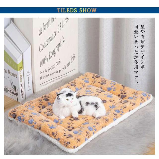 | ねこちゃんワンちゃんの冬支度♪ ・星や肉球デザインが可愛いあったか冬用マット。 ・いつものベッドの敷物に。お気に入りの場所に。 ・表面はふわふわなフランネル生地、裏面はもこもこのボア素材を使用。 ・洗濯機での丸洗いが可能なので、いつでも清潔に保てる。 ・ふんわりと柔らかい肌触りで、猫ちゃんも気持ちよくくつろげちゃう♪ | |