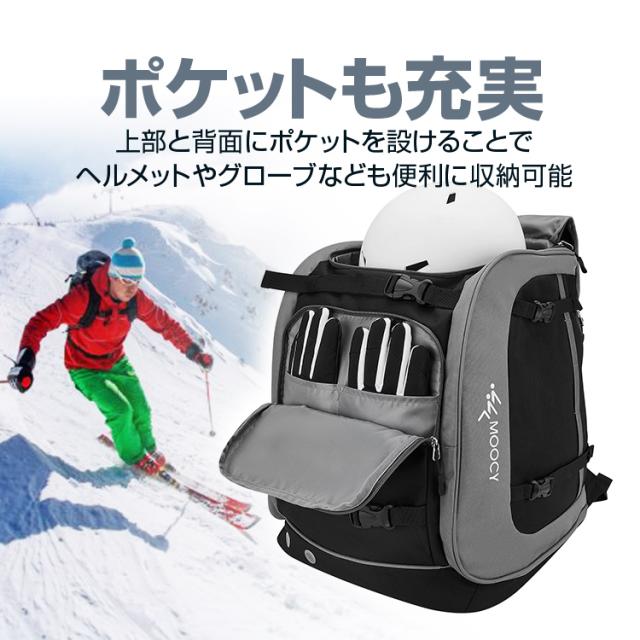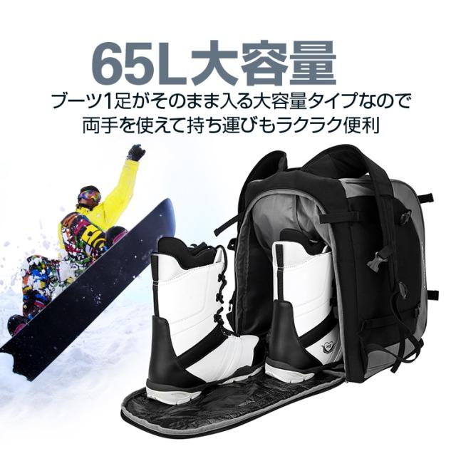 スキーリュック 大容量65L 撥水素材 スキー板/スノーボードも取付可能 ポケット付き グローブ ヘルメット ゴーグルも収納可 SKRSK65L