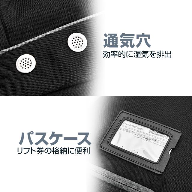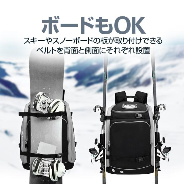 スキーブーツをはじめ、グローブ、ゴーグルやヘルメット、またサイドのベルトにスキー板やストックも取付できるので、スキーギアをまるごと背負って持ち運ぶことができます。
