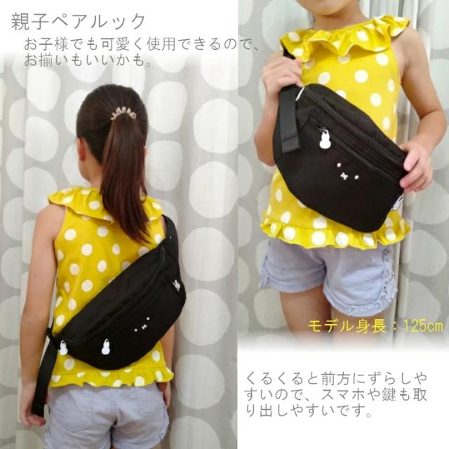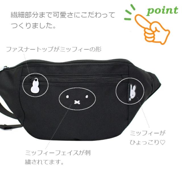 ボディーバッグ ウエストポーチ ウエストバッグ レディース ミッフィー miffy 斜め掛け ショルダーバッグ ブラック ランニングバッグ スマホバッグ サブバッグ シンプル 運動会 遠足 デート 通勤 かわいい プレゼント