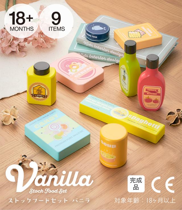 ままごと おままごと ままごとセット おままごとセット おままごとグッズ 木製 食材 調理 おもちゃ 家事 子ども キッズ おしゃれ 9点セット CEマーク付き ストックフードセット Vanilla(バニラ)