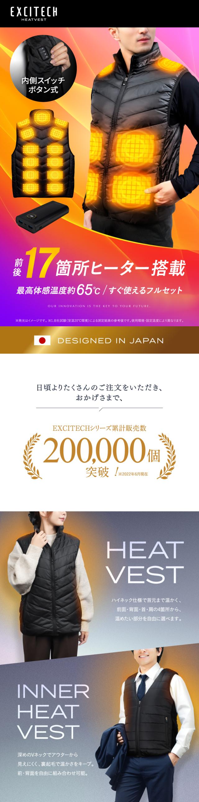 ベスト 発熱ベスト 電熱ベスト アウター モバイルバッテリー付き ヒーターベスト 防寒着 ダウンベスト 裏起毛 レディースアウター メンズアウター 17ヶ所ヒーター 電熱ジャケット バイク ゴルフ キャンプ あったか 送料無料 ギフト プレゼント EXCITECH