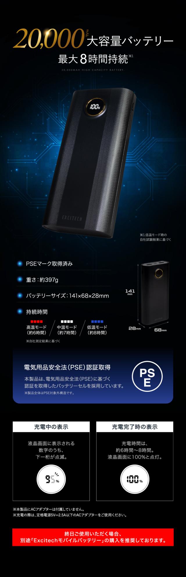 【PSE認証取得済み/20,000mAh大容量バッテリー】