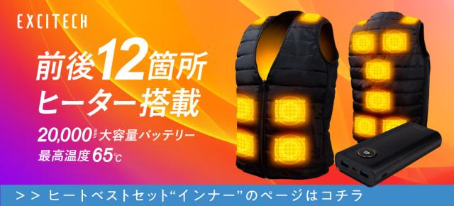 ※Excitech Heat Vestに対応していないバッテリーによる故障は保証期間内でも対象外です。