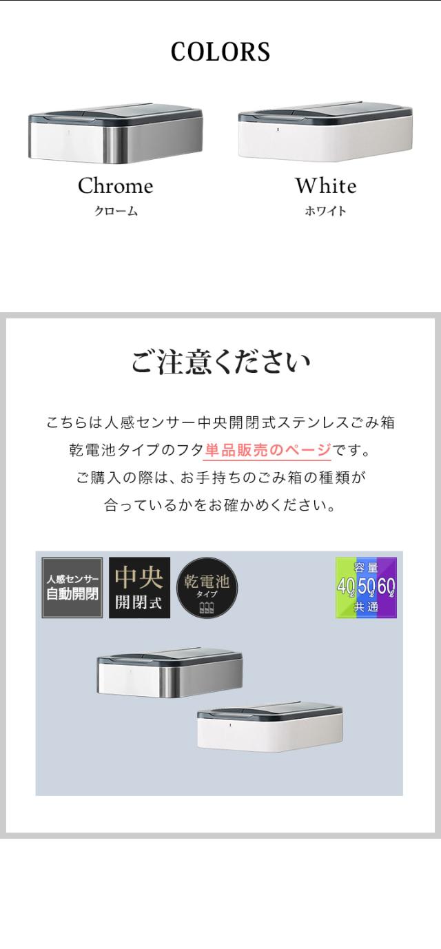 自動開閉 ゴミ箱 交換用ふた 40L/50L/60Lタイプ 専用フタ 乾電池タイプ 人感センサー 中央開閉式 ステンレスごみ箱 ふた単品 交換用パーツ 自動センサー付き ダストボックス ※フタのみ/ゴミ箱本体別売 1年保証 送料無料