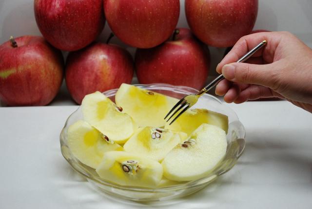 | りんごの蜜は【蜜症状】という生理的な現象です。 この蜜は、1月中旬ころから果肉に吸収され、肉眼では確認できなくなる性質がございます。 りんごの糖度に変わりはございませんので、ご了承お願い致します。 また、当店のりんごは冷蔵庫に保存され温度管理をいたしておりますので新鮮なりんごをお楽しみいただけます。 ※当店のりんごは蜜入りを保障するものではございませんのでご了承お願いいたします。 |