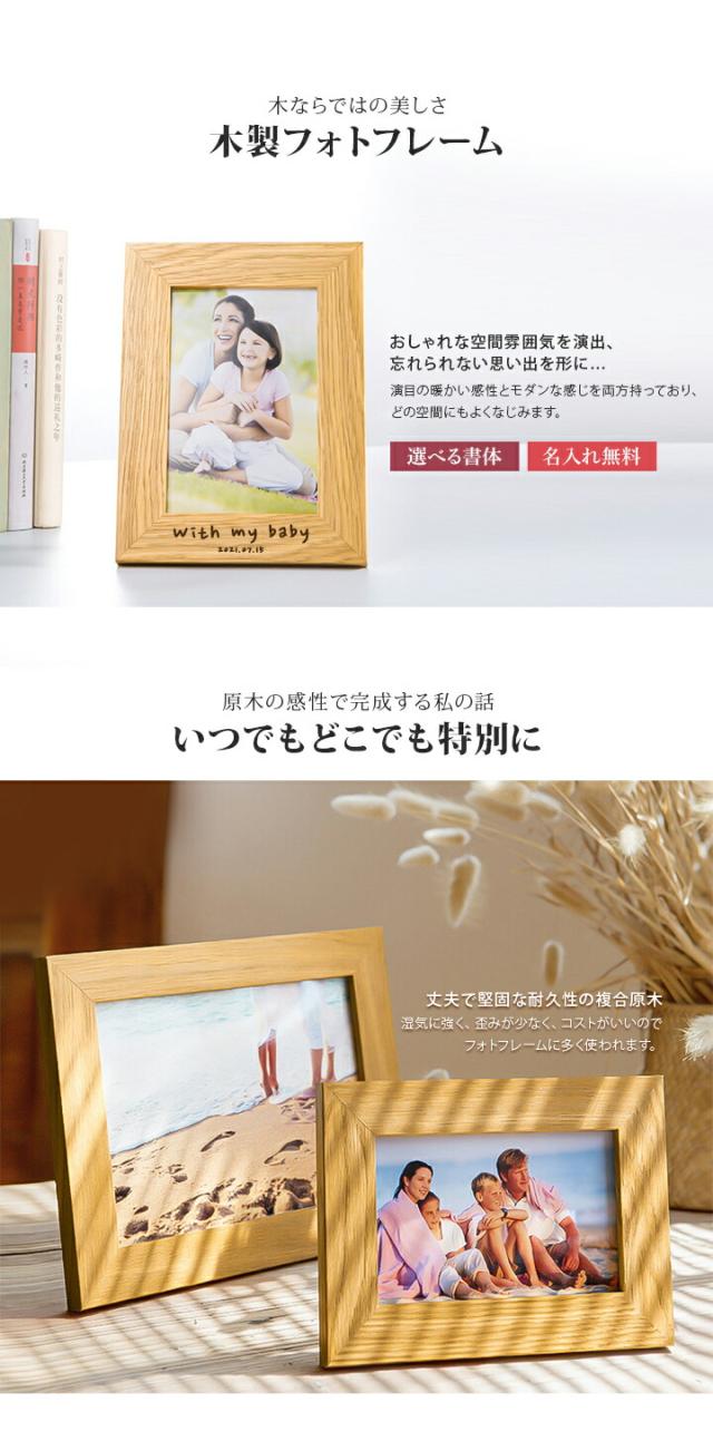 | 思い出の一こま、名入れ木製フォトフレーム |