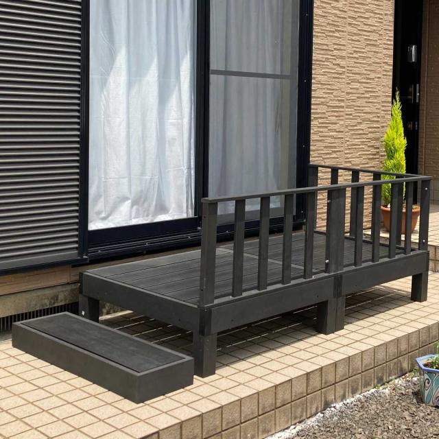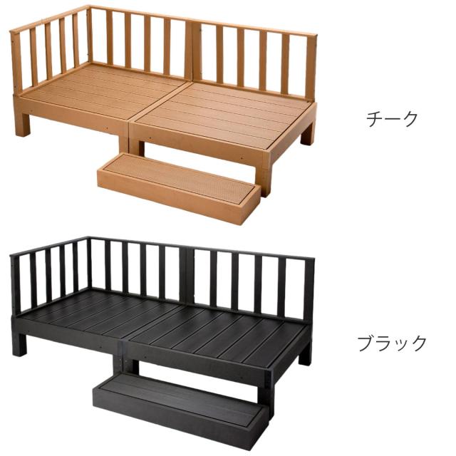ウッドデッキ 本体2台+コーナーパネル+サイドパネル+踏み台 人工木 ( ガーデンデッキ 人工木デッキ 樹脂 DIY ウッドパネル 縁台 ぬれ縁 90×90cm 2台 掃き出し窓 連結 人工木材 バルコニー 庭 エクステリア 外構 簡単 )