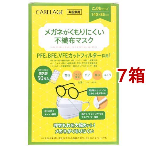 ケアレージュ メガネがくもりにくい不織布マスク こども 個包装(50枚入*7箱セット)[不織布マスク]