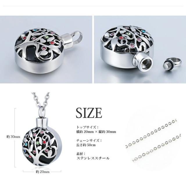 遺骨ペンダント メモリアル ネックレス 命の木モチーフ 刻印 名入れ 遺骨カプセル 2行刻印 ミニ骨壷 ステンレス ペット 遺骨カプセル ペットロス 犬 猫 ペット仏具 記念ジュエリー 刻印無料 オリジナル刻印