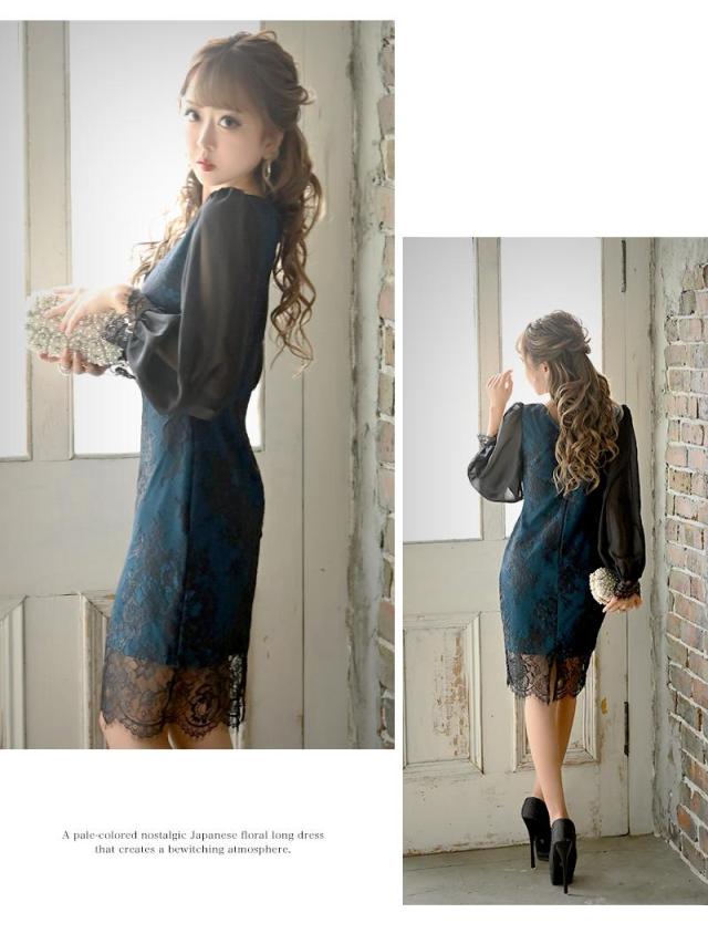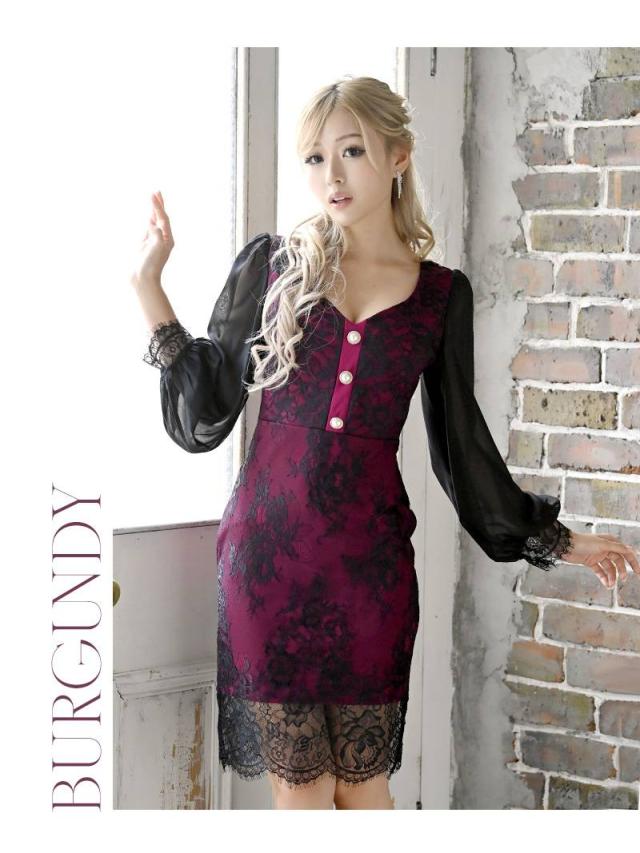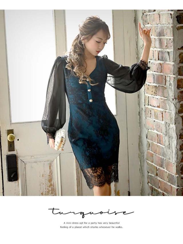 キャバドレス キャバ ドレス キャバクラ ミニドレス パーティードレス Ryuyu 長袖 袖あり レース sexy