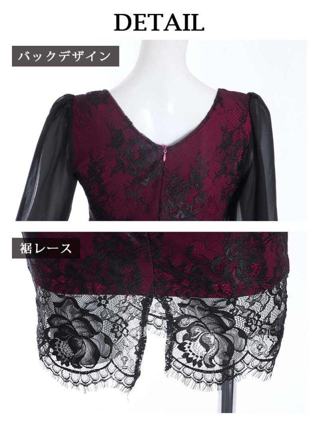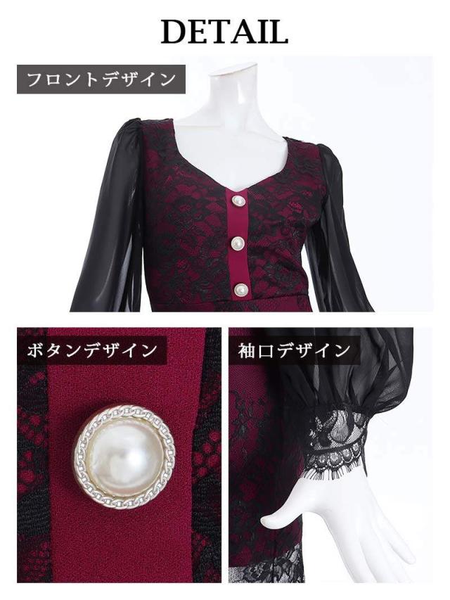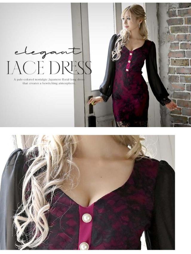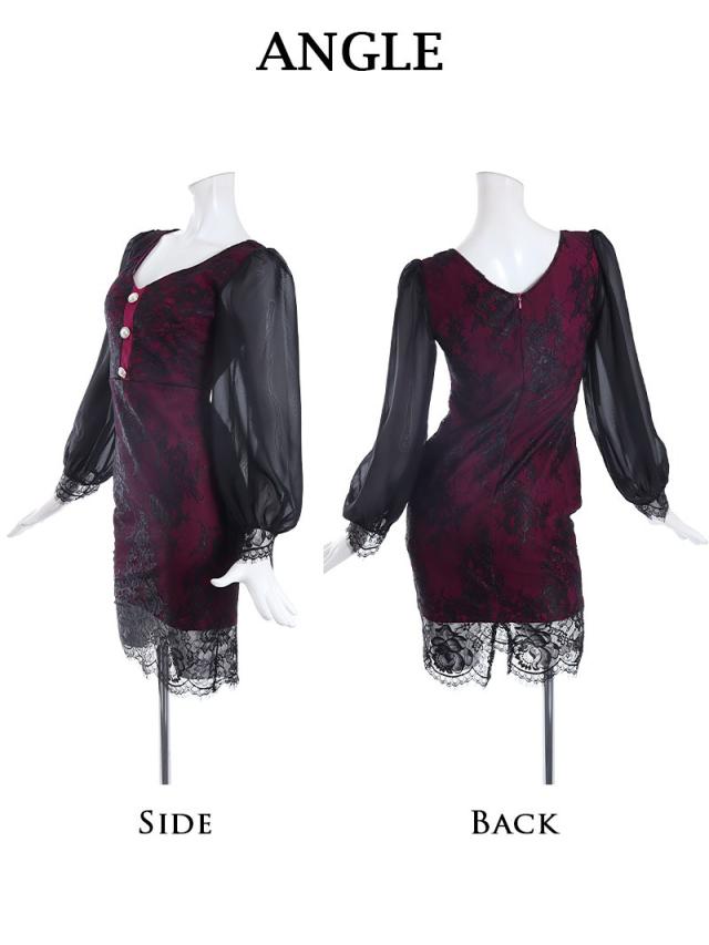 ☆スカートの裾のレースからちらっと見える肌がお客様をドキドキさせ、シフォン袖の袖付きドレスはふんわり広がるボリュームがキャバ嬢さんが気になりがちな二の腕も自然とカバー。