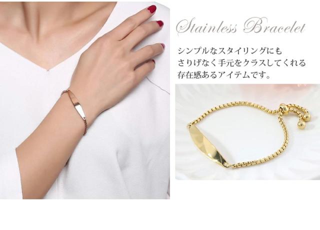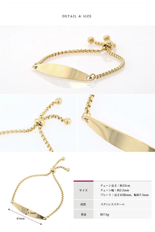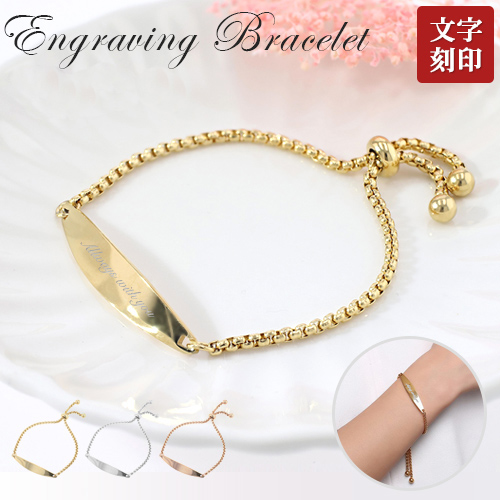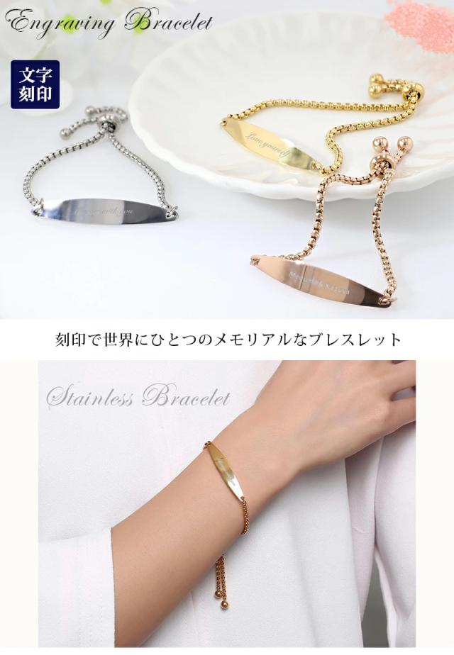刻印ブレスレット プレートチェーン【名入れ無料】長さ調節 ブレスレット 刻印無料 さりげない 人気 20代 30代 40代 大人 aruon 名入れ工房
