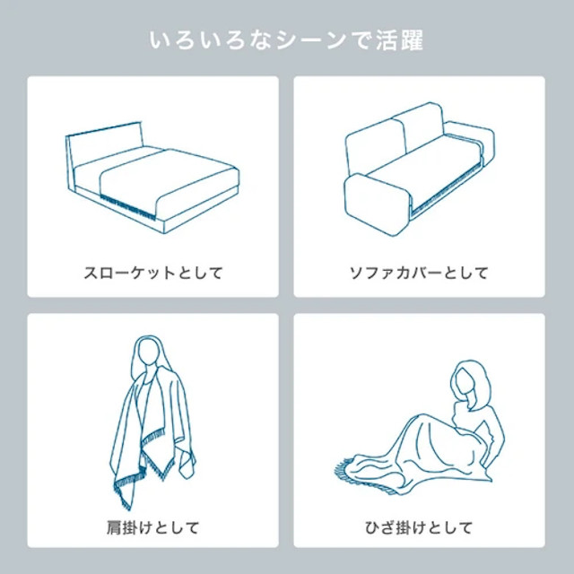 毛布として、スローケットとして、ソファカバーとして、用途は様々。