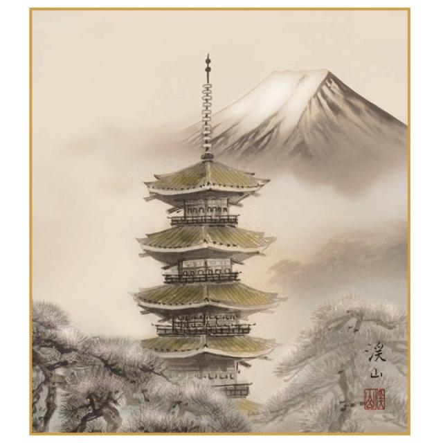 色紙絵 富士山画 【冬塔景】 伊藤渓山 [K13-005D]【代引き不可】