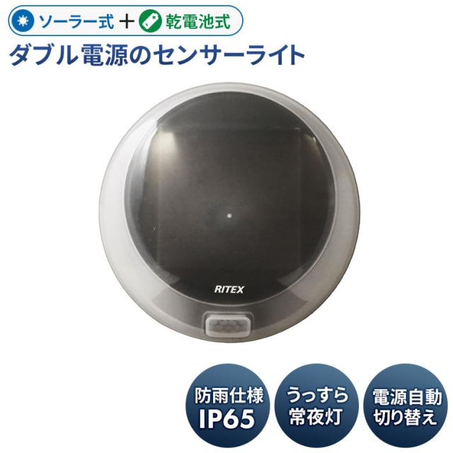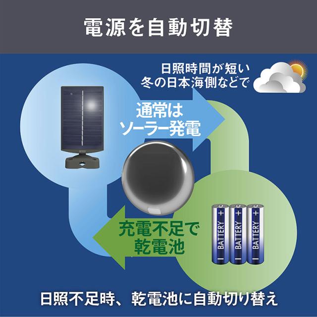 【42%引き】 人感センサーライト 屋外 防犯ライト ムサシ どこでもハイブリッドソーラーライト3W 丸型(SWL-HB102) ソーラー発電式 乾電池式 電源自動切り替え コンパクト 小型ライト センサーライト 防犯グッズ 玄関灯 照明 LEDライト