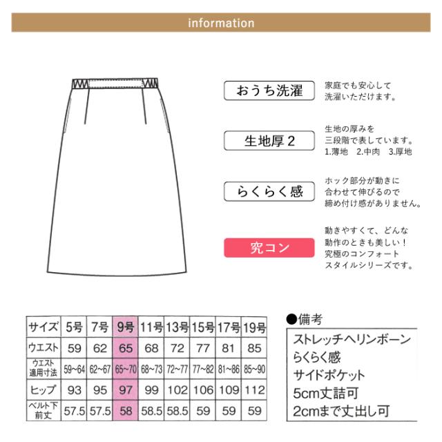 幅広い年代や職種の方に快適に着用していただける、脇ゴムAラインスカートです。