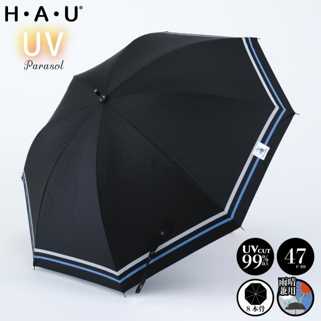 【晴雨兼用傘】H・A・U 無地ライン ショート日傘 47cm ★晴れの日も雨の日も使える