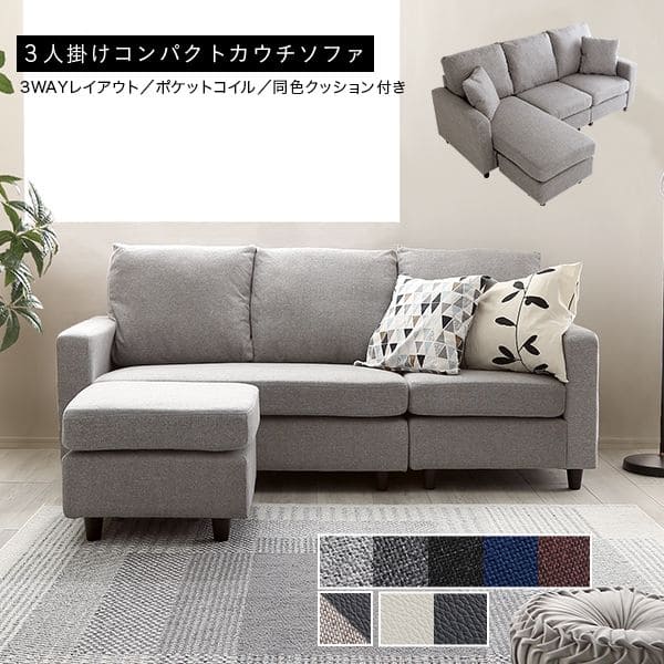 カウチソファ ソファ 3人掛け カウチ ハイバック レザー 合皮 L字 3人掛けソファ 3人用 革 肘掛け ソファー おしゃれ 脚付き ゆったり リビング 幅広