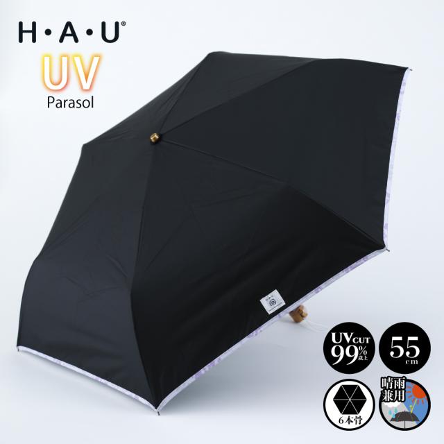 【晴雨兼用傘】H・A・U ベリー柄パイピング 折りたたみ傘 55cm ★晴れの日も雨の日も使える