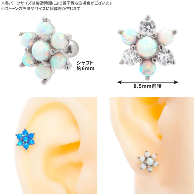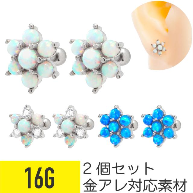 2個セット オパール フラワー ストレートバーベル 16G サージカルステンレス 軟骨ピアス ボディピアス 金属アレルギー 対応 つけっぱなし
