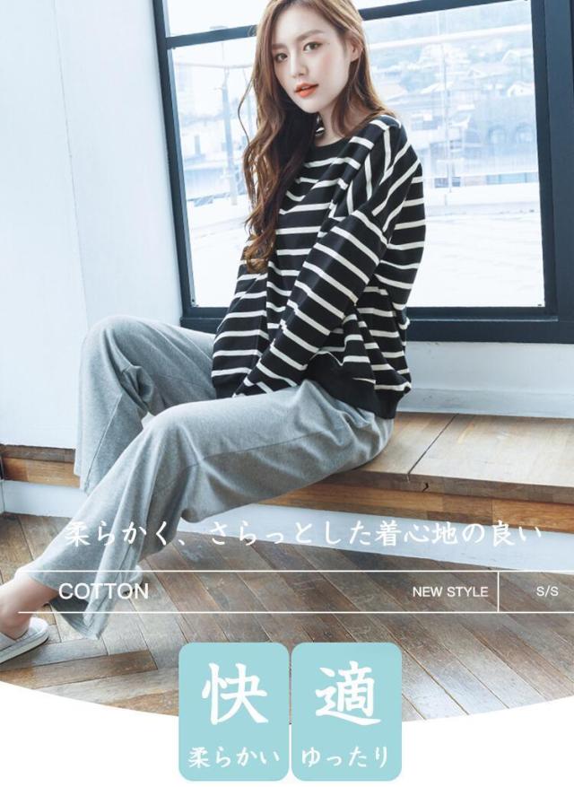トップ&パンツ ルームウェア レディース パジャマ 女 部屋着 綿100% セットアップ 長袖 コットン カップル スウェット 上下セット パジャマ 春秋冬 カットソー きれいめ 大人 カジュアル 50代 40代 30代 20代 女性用 M-3L