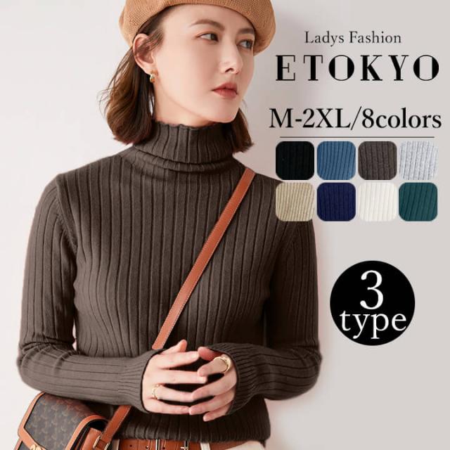 ニット 3タイプ 選べる Uネック Vネック Hネック ハイネック リブ 凹凸感 シンプル ロングシーズン フィット感 リブ編み 縦ライン 細見せ 合わせやすい 着回し 定番 大きいサイズ有 20代 30代 エレガント 大人 ママ レディース ブラック 黒 ブルー 青 ダークブラウン 茶 グレー 灰 ライトブラウン ネイビー 紺 藍 オフホワイト 白 ピーコック 緑 袖あり 長袖 yctops27 M L XL 2XL