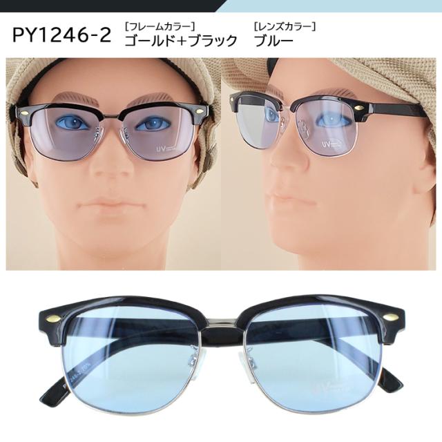 サングラス メンズ UVカット サーモント ブロータイプ 運転用 おしゃれ かっこいい スクエア 薄い 色 ライトカラーレンズ PY1233 PY1246 黒縁 ブラック デミブラウン ブルー 青色 パープル グリーン スモーク カジュアル ドライブ アウトドア 紫外線対策 定形外郵便送料無料