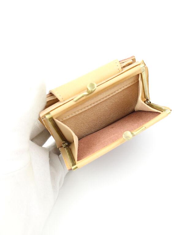 間口:スナップボタン開閉式、外側:がま口小銭入れ、内側:お札入れ×1