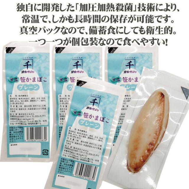 宮城名物の笹かまぼこ。笹かまぼこはこれまで冷蔵保存が必須で、長時間の持ち運びには向いていない商品でした。しかしこの度、かまぼこ一筋の宮城県老舗蒲鉾店が、独自に開発した「加圧加熱殺菌」技術により、常温でしかも長時間の保存が可能な笹かまぼこを開発。かまぼこ本来のプリプリの食感と旨みや美味しさもそのままに楽しむことができます!そして真空パック保存なので、とっても衛生的。お弁当にお子様のおやつに、ピクニックやキャンプにも持って行けて、いつでもどこでも食べたい時にお気軽に笹かまが楽しめます。賞味期限は製造日から180日なので、ご家庭でのフードストックとしてもご活用頂けます。