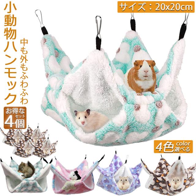 小動物 ゲージ ベッド ハンモック 4個セット 小動物ハンモック ハムスターハンモック 20x20cm モルモット ペットの家 デグー フクロモモンガ ハムスター マウス 小鳥 ハリネズミ フック付き 寝床 寝袋 暖かい 保温対策 ふわふわ