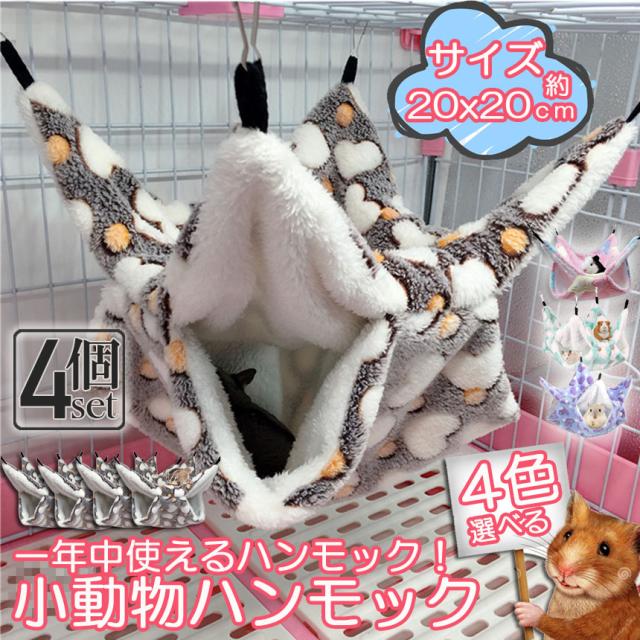 小動物 ゲージ ベッド ハンモック 4個セット 小動物ハンモック ハムスターハンモック 20x20cm モルモット ペットの家 デグー フクロモモンガ ハムスター マウス 小鳥 ハリネズミ フック付き 寝床 寝袋 暖かい 保温対策 ふわふわ