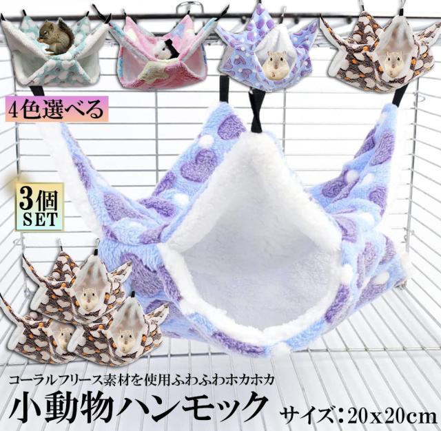 小動物 ゲージ ベッド ハンモック 3個セット 小動物ハンモック ハムスターハンモック 20x20cm モルモット ペットの家 デグー フクロモモンガ ハムスター マウス 小鳥 ハリネズミ フック付き 寝床 寝袋 暖かい 保温対策 ふわふわ