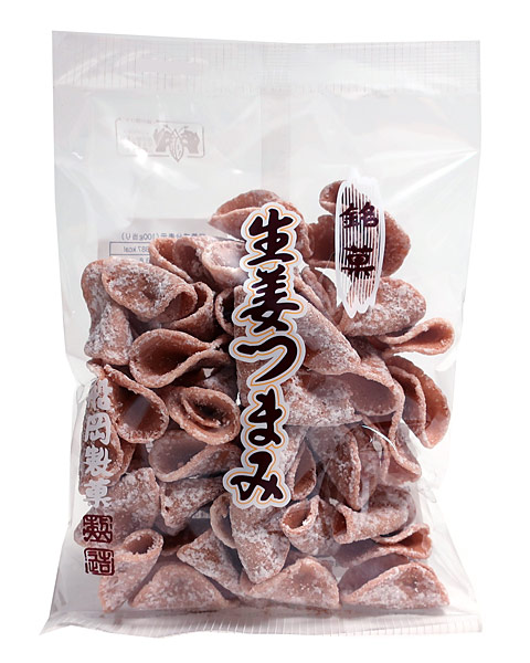 カリッと焼いたせんべいに生姜エキス入り砂糖蜜をからめた、口どけのよい爽やかな味わいのつまみ菓子です。