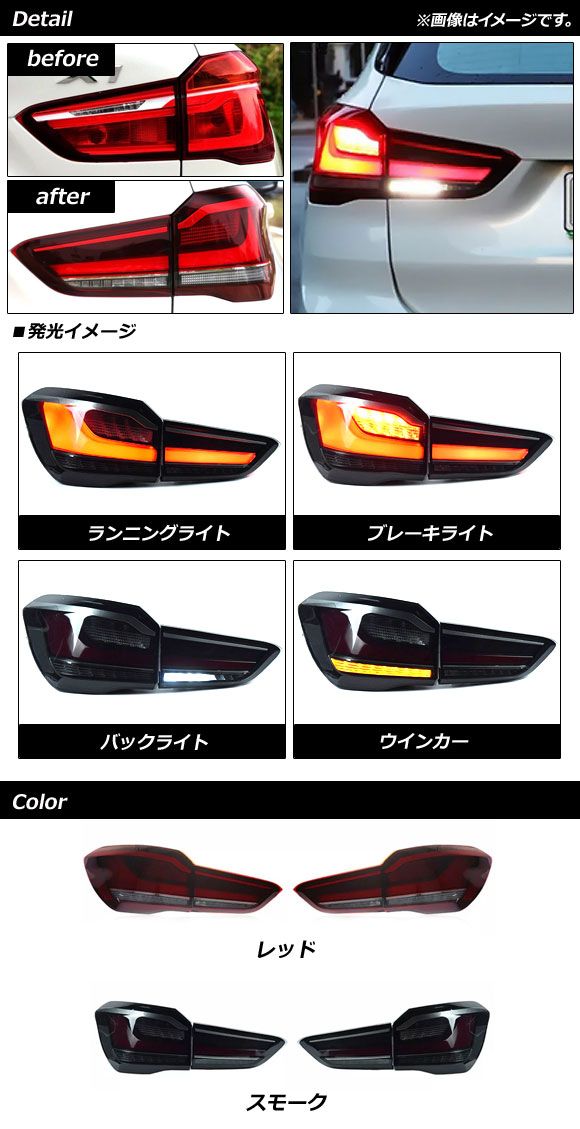 LEDテールランプ BMW X1 F48 前期 2015年10月〜2019年09月 レッド AP-RF225-RD 入数:1セット(左右)