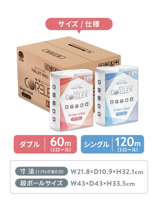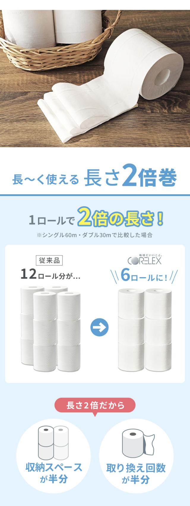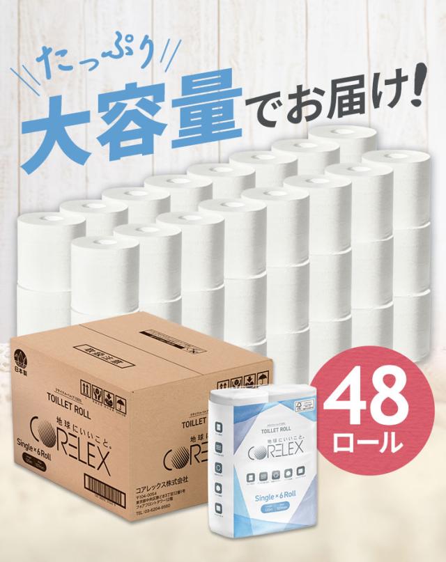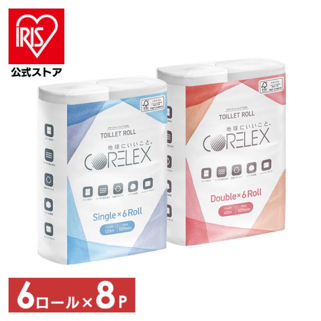 トイレットペーパー トイレットロール [48ロール] コアレックス 120m 60m 6ロール×8P コアレックス CORELEX 倍巻 再生紙 シングル ダブル