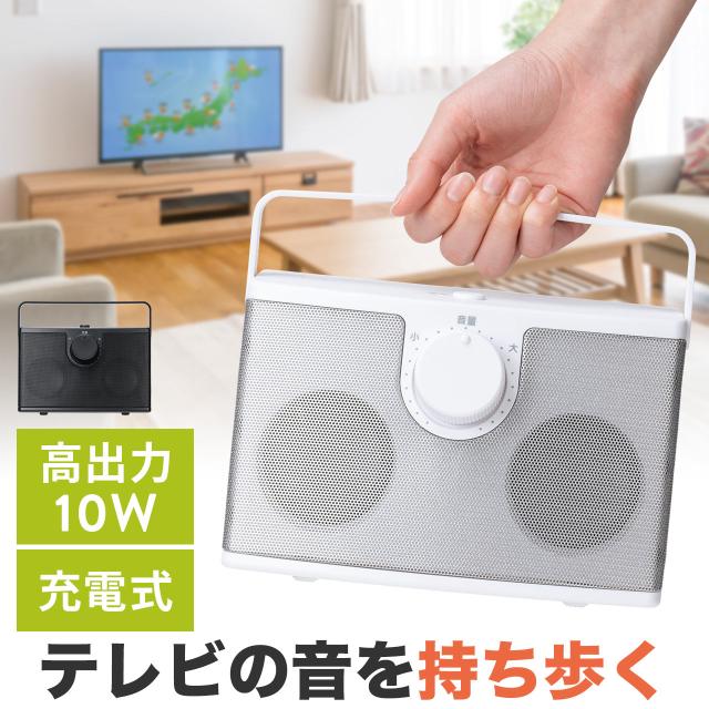 手元スピーカー 有線 テレビスピーカー 10W高出力 5mケーブル 繰り返し使える充電式 ブラック ホワイト[400-SP103]