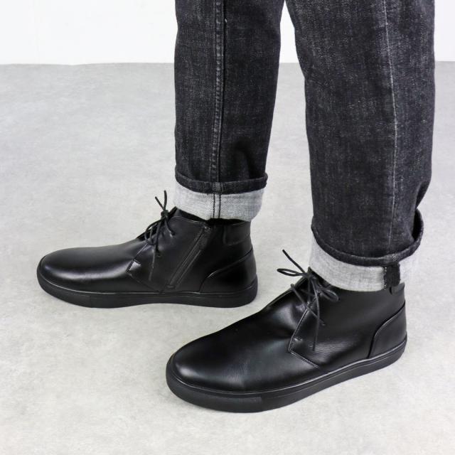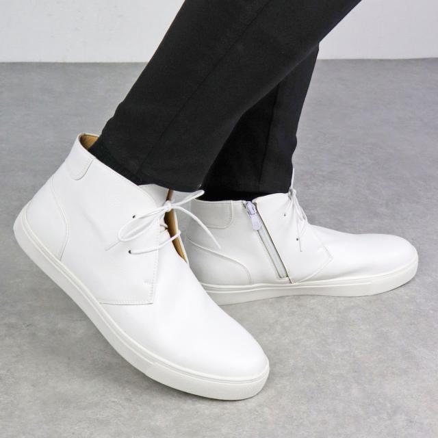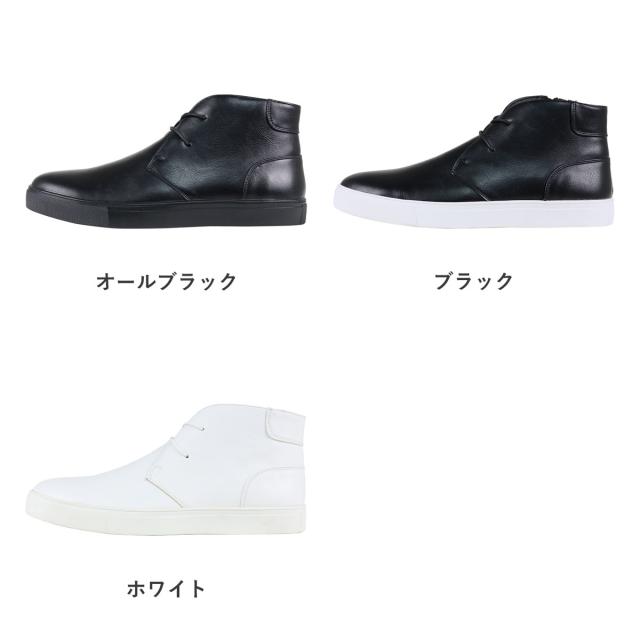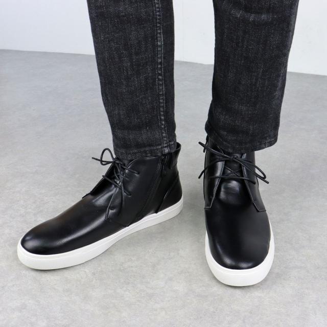 【返品交換不可】スニーカー メンズ サイドジップ レザー 合成皮革 チャッカ 紐靴 フラット 2.5cmヒール No.6338 25.0cm-27.0cm 黒 ブラック Dedes デデス