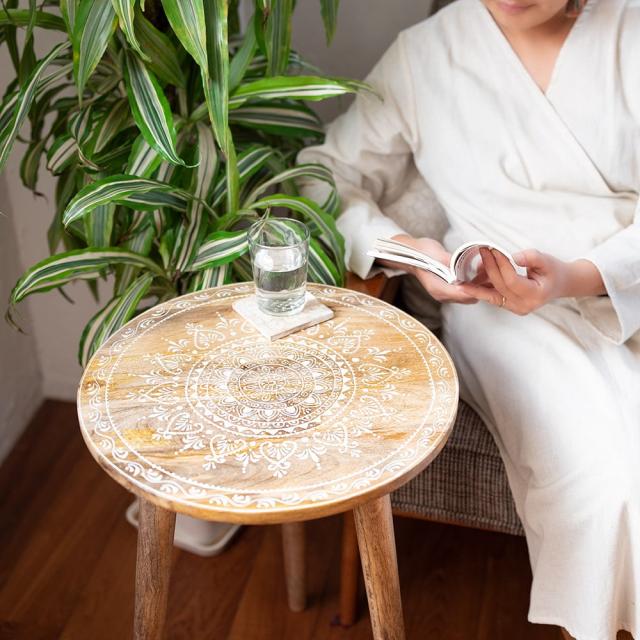 アジアン家具,テーブル,ナチュラル,木製,アジアン テーブル,サイドテーブル,インテリア,家具,ハンドメイド,メヘンディ