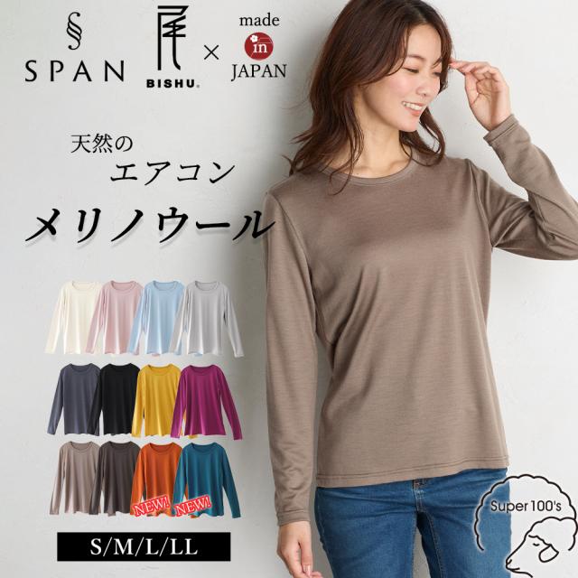 メリノウール 日本製 尾州織り tシャツ インナー 登山 シャツ 長袖 レディース メンズ クルーネック 無地 カットソー 長袖tシャツ アンダーウェア カットソー きれいめ ベースレイヤー シャツ 秋 冬 30代 40代 50代 60代