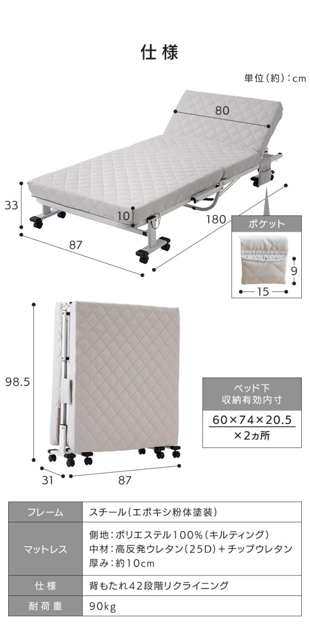 ★クーポンあり★ 完成品 折り畳みリクライニングベッド(高反発) SS-LG SS-IV 全2色 ベッド 折りたたみベッド ショート セミシングル 軽量 収納 高反発 マットレス付き ひとり暮らし 子供用 送料無料