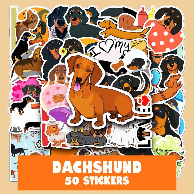ダックスフンド ステッカー 50枚セット PVC 防水 シール 犬 いぬ イヌ ペット ドッグ 小型犬 ドイツ スーツケース MacBook