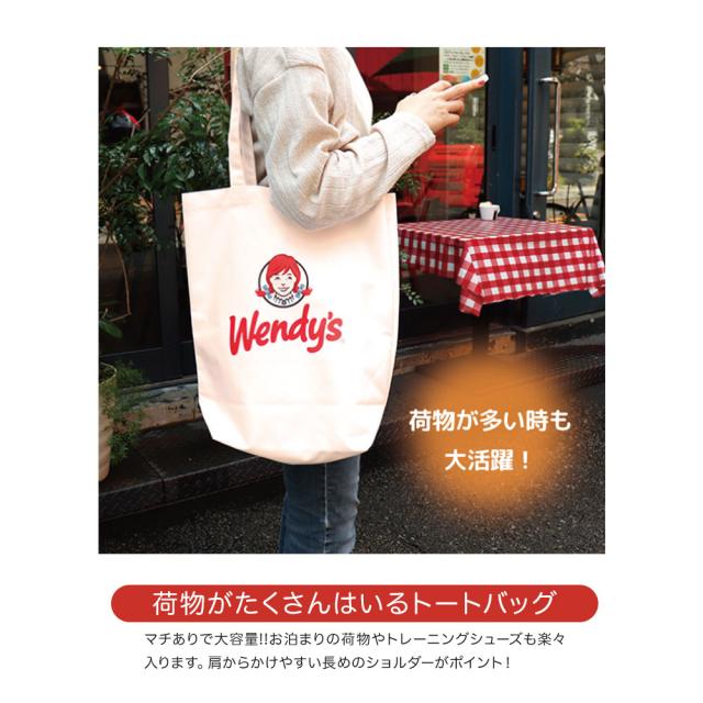 トートバッグ 大きめ キャンバス レディース メンズ 大容量 a4 カジュアル キャンプ アウトドア 通勤 通学 キャンパス 大学生 帆布 ロゴ 白 アイボリー USA アメリカン 雑貨 ハンバーガー ショップ キャラクター 女の子 アメリカン雑貨 アメリカ Wendy's