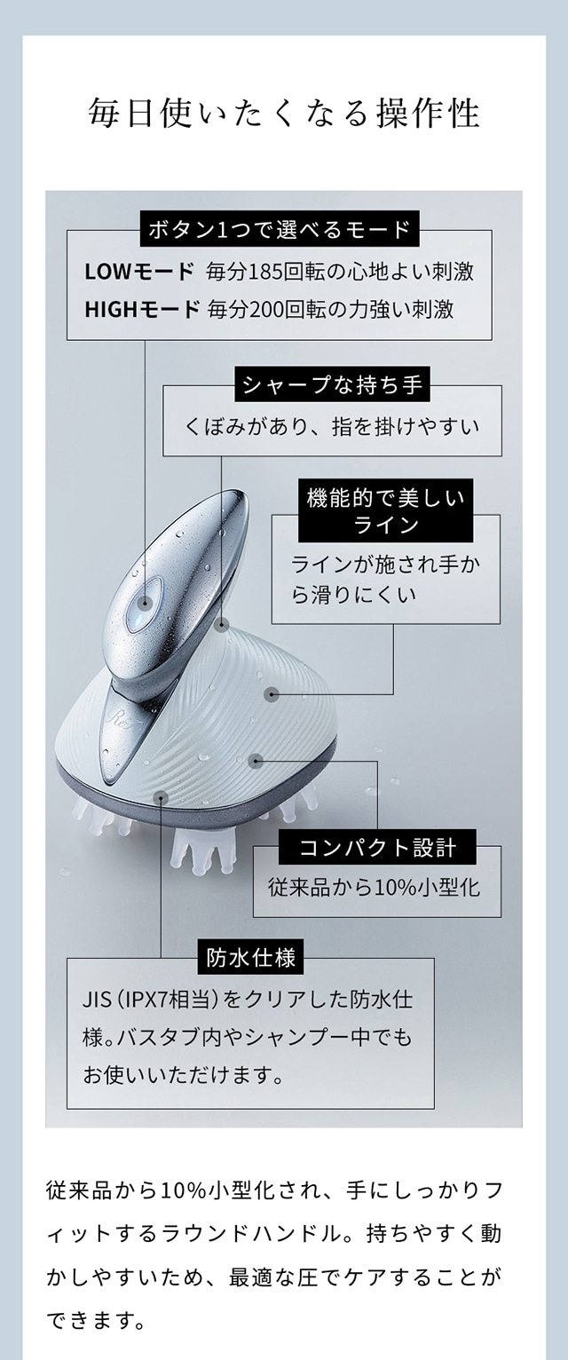- 公式ショップさんだけあって全てが良し。お高い商品で購入迷ったけど買って良かったです。もみ心地はちょうど良い強さ。使い始めは頭皮の血行が悪すぎて使った後頭皮に痒みが出たけどしばらく使って見たら頭皮がほぐ...