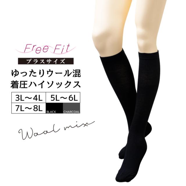 着圧ハイソックス レディース 大きいサイズ ぽっちゃり ゆったり プラスサイズ メール便2足まで ウール混 靴下 日本製 FreeFit フリーフィット 3L 4L 5L 6L 7L 8L ゆったりサイズ 超のびのび LegStyle