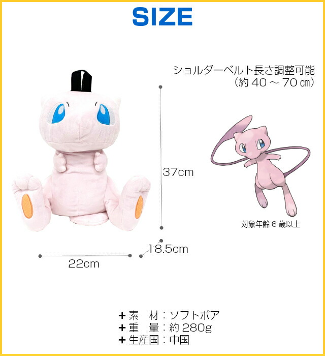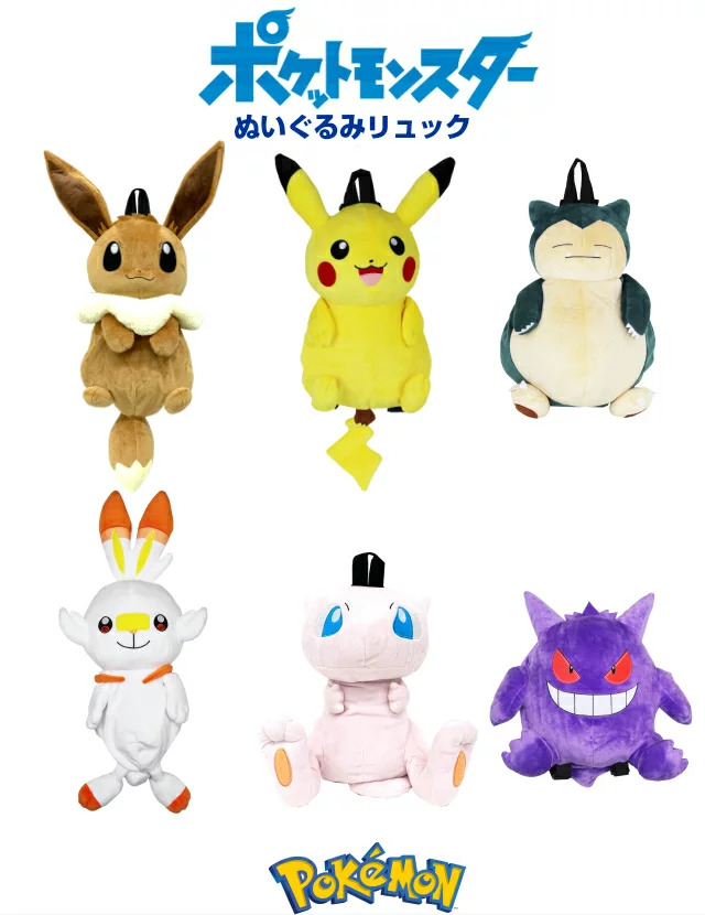 ![]() ![]() ![]() ![]() ![]() ![]() ![]() ![]() ![]() ![]() ![]() ![]() ![]() ポケットモンスター ぬいぐるみリュック ふわふわのぬいぐるみタイプで、手触りもきもちよく、思わず抱きしめたくなるリュックです。 また、ぬいぐるみを背負う姿はかわいすぎて目立つこと間違いなし。 かわいいイーブイ・ピカチュウ・カビゴン・ヒバニー・ゲンガー・ミュウと一緒にお出かけできちゃうリュックです。