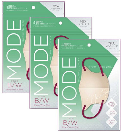 HADARIKI ハダリキ 肌映え3Dマスク・モード ベージュ/ワインレッド 7枚入り×3【3個セット】【ネコポス】カラーマスク おしゃれ バイカラー