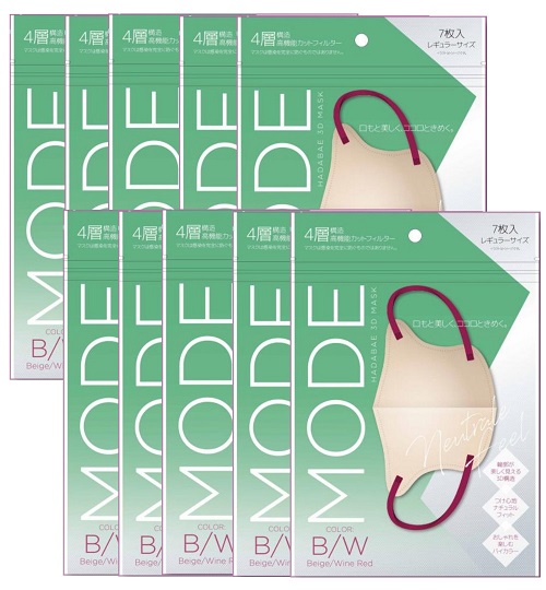HADARIKI ハダリキ 肌映え3Dマスク・モード ベージュ/ワインレッド 7枚入り ×10【10個セット】カラーマスク おしゃれ バイカラー