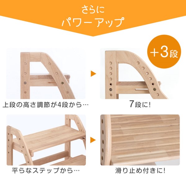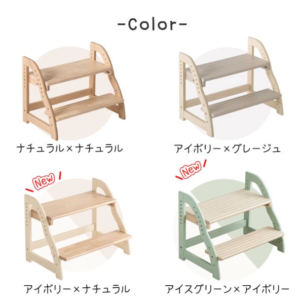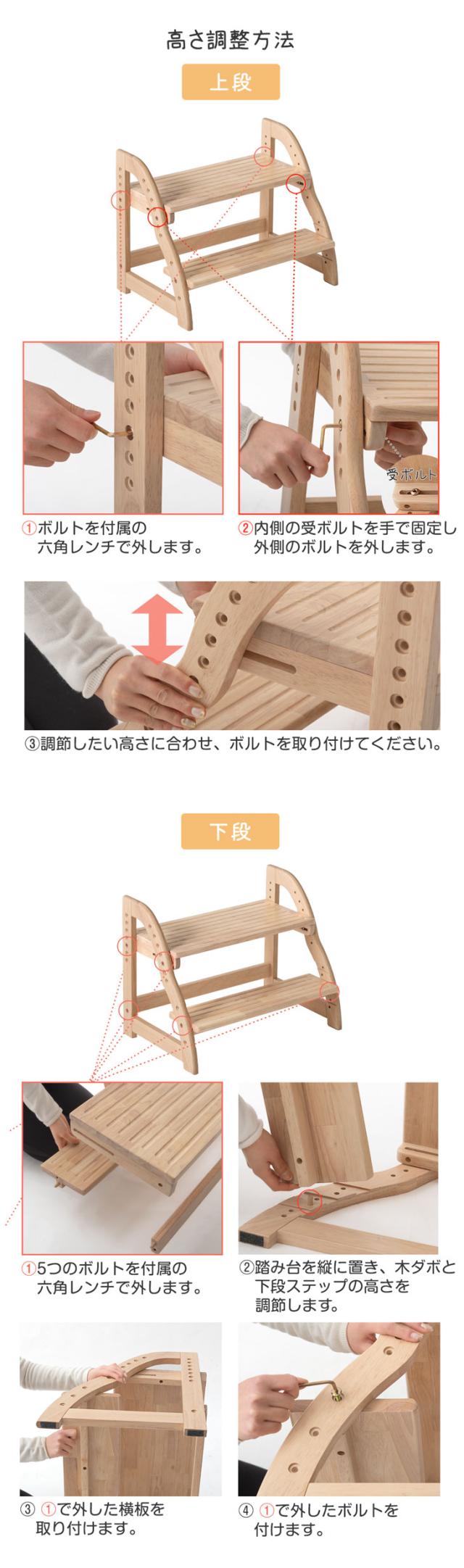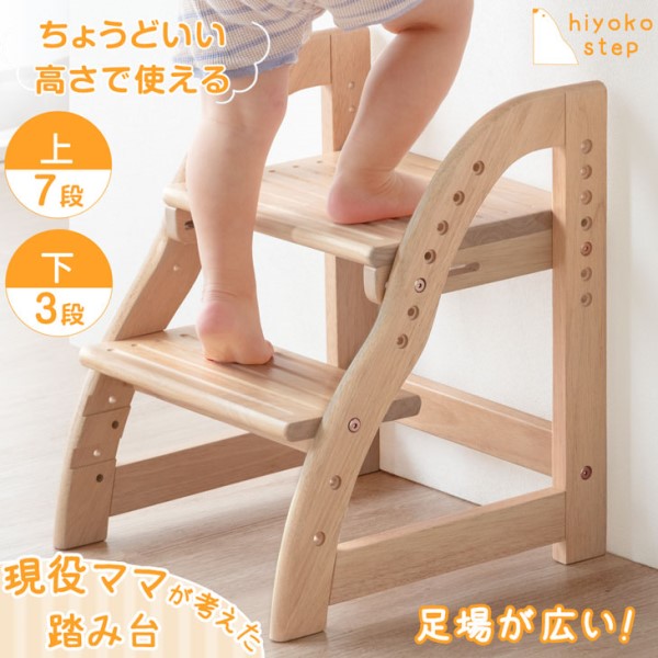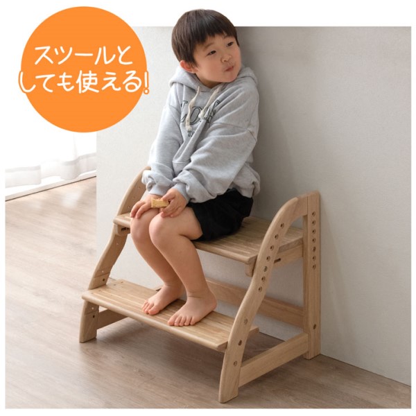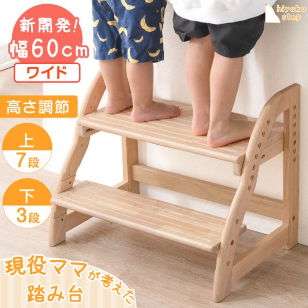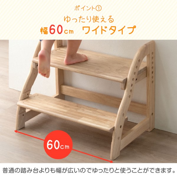 ステップ&スツール 踏み台 2段 ワイド 60cm 高さ調節 4段階 木製 キッズステップ 子供ステップ スツール ステップスツール ステップ踏み台 補助台 木目 北欧 男の子 女の子